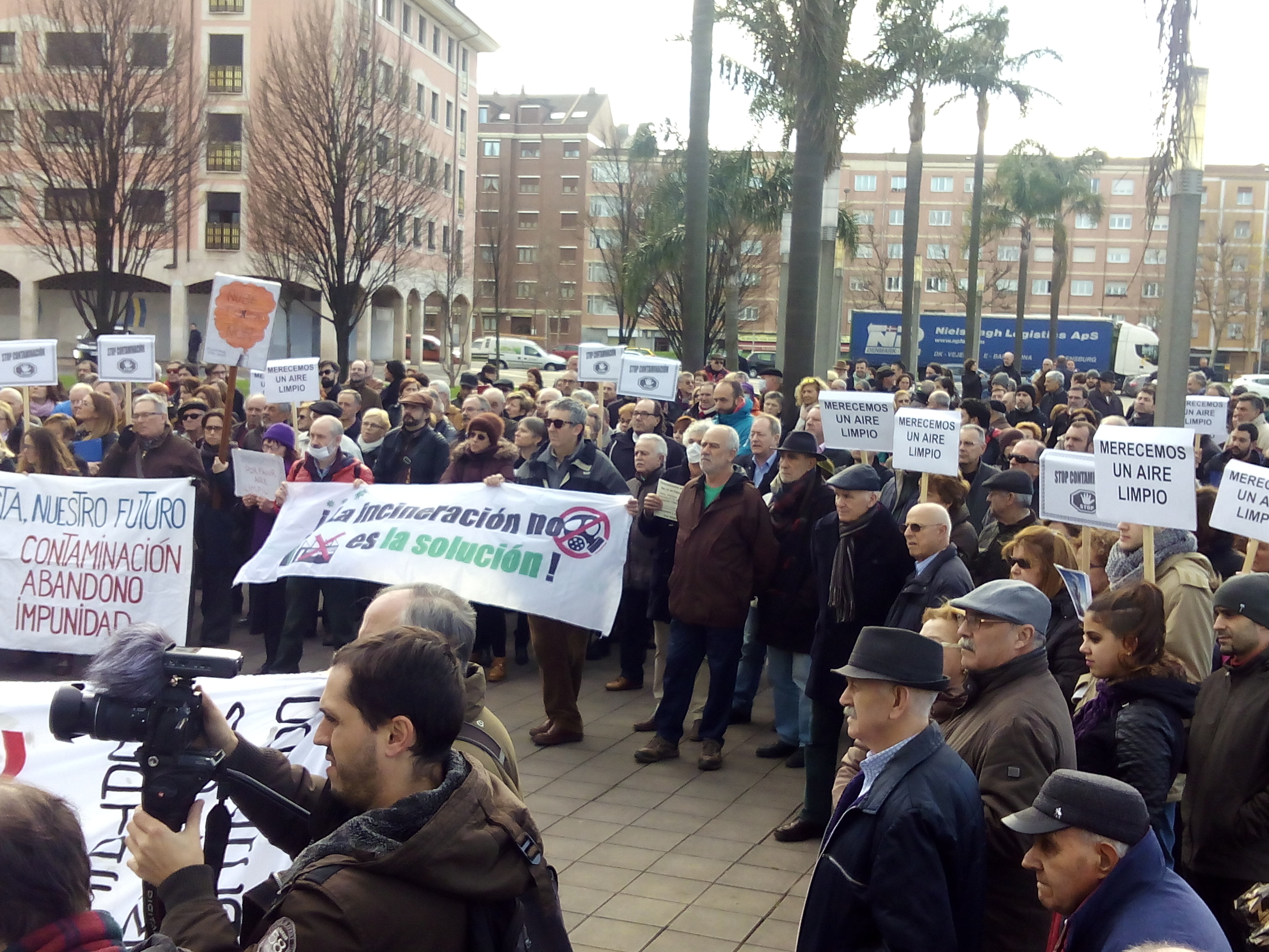 Algunas de las imágenes de la concentración de ayer martes a las 17:00 horas, frente al edificio de la EMA en la exigencia de Un Aire Limpio para los vecinos de Gijón.