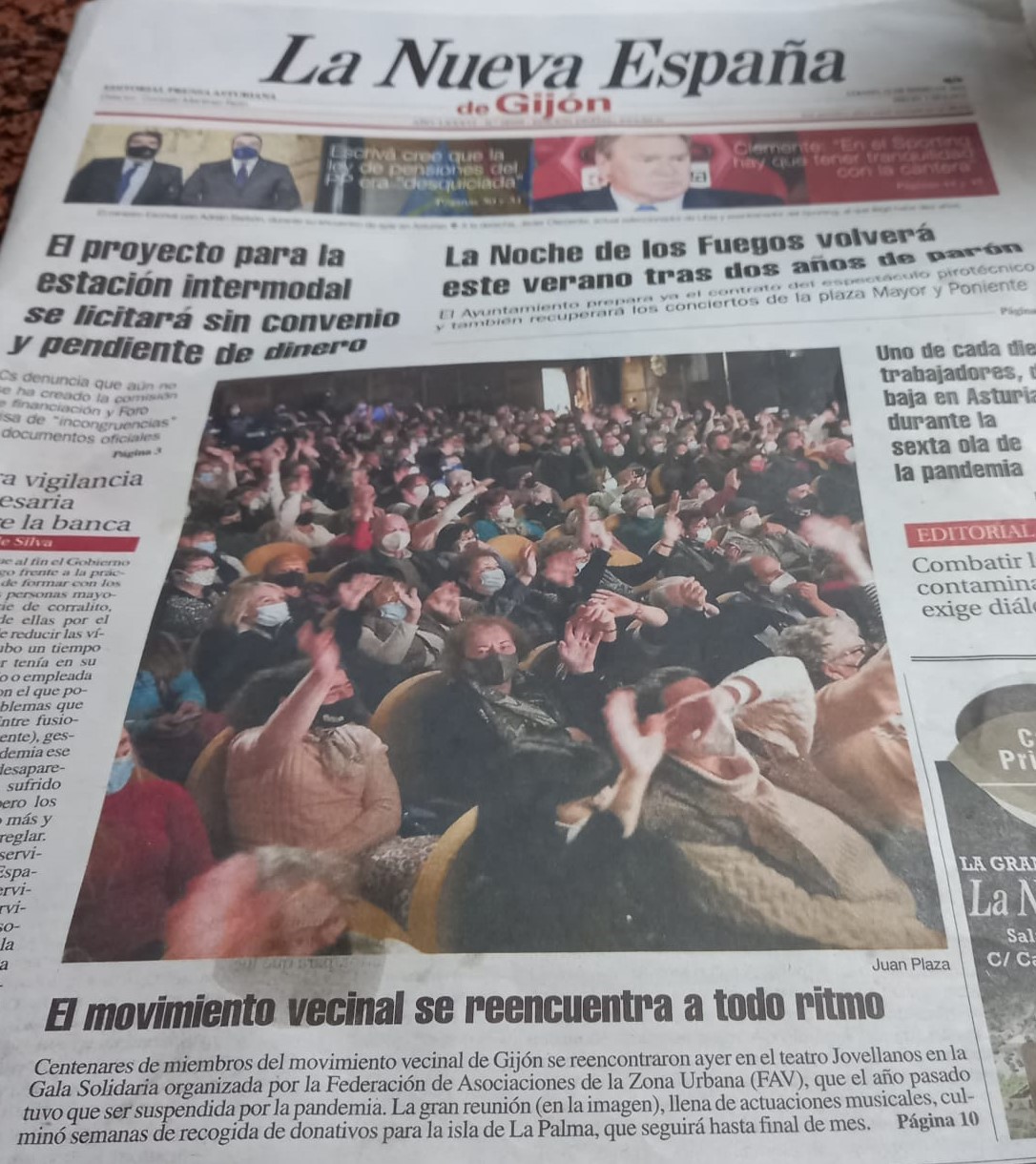 Era el acto estrella de la campaña Todos con La Palma, y el festival solidario del pasado viernes 21 en el Teatro Jovellanos en favor de los afectados por el volcán no defraudó. César Formentí, Cintya Zebaze, Charlie Blanco, Tere Rojo, Ceferino Otero, el Trío Tándem, Alberto Rodríguez, Mina Longo, el Grupo Tekila, Vuelta Abajo y Víctor de Cimadevilla fueron los artistas artífices de un espectáculo de altura que matuvo entrerenidos durante más de dos horas al millar de personas que llenaban el Teatro.. Desde aquí aprovechamos para darle sde nuevo las gracias a todos y cada uno de ellos. A Arancha Fernández por conducir con maestría este espectáculo de variedades. A los Técnicos del Teatro por su entrega incansable, a los medios de comunicación por su eco, y en especial a Radio Enol por su retransmisión en directo, a la alcaldesa y a los representantes de todos los grupos municipales del consistorio gijonés por su presencia institucional, a los colaboradores Otea, Unión de Comerciantes, Hostelería con Conciencia y Asturias Suma, y a toda la sociedad civil que, bien a través de sus entidades más emblemáticas, bien a través del vecino/a de a pie han contribuido con sus aportaciones a recaudar cerca de 25.000 euros que, sin ninguna duda, servirán para paliar la situación de algunas familias que lo están pasando por los efectos devastadores del volcán. Las asociaciones que componen la federación vecinal han demostrado una vez más del poderío del movimiento vecinal de Gijón, y la soidaridad del pueblo de Gijón.