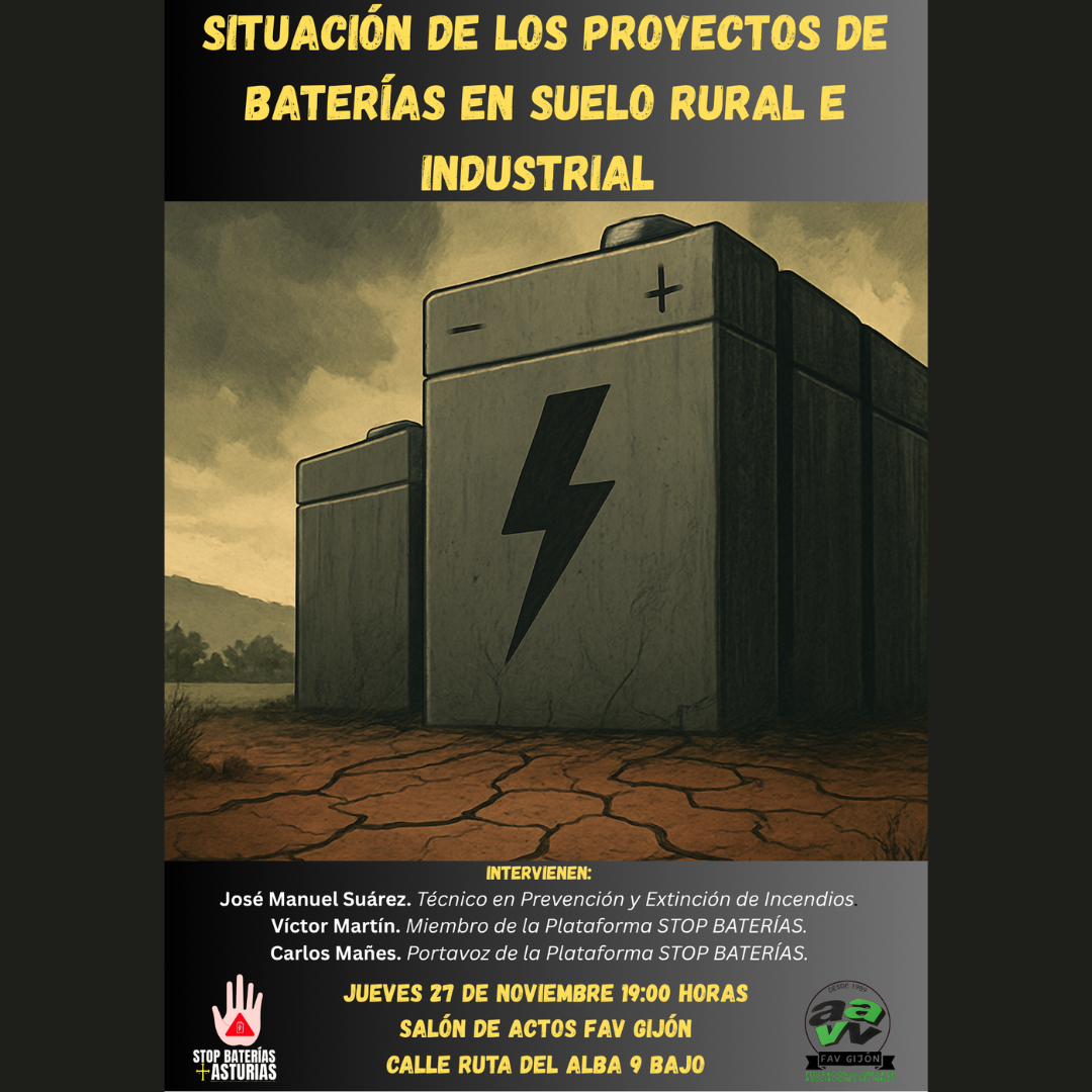 PRÓXIMO JUEVES 27 EN LA FAV INTERESANTE CHARLA SOBRE LOS PROYECTOS DE PARQUES DE BATERÍAS EN GIJÓN Y ASTURIAS.