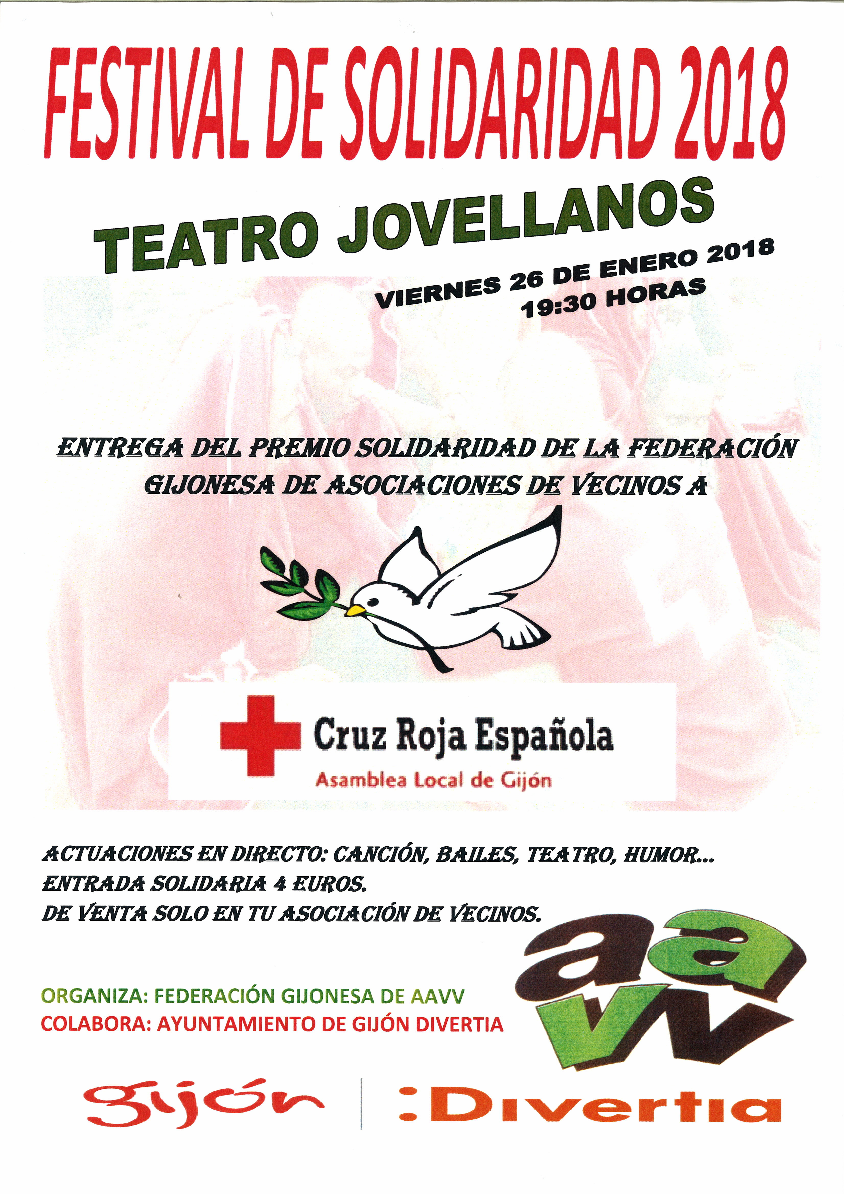 Un año más, el público gijonés se ha volcado en nuestro tradicional Festival de Solidaridad, en esta ocasión para darle un homenaje merecidísimo a la Asamblea Local de Cruz Roja, Premio Solidaridad 2017. Con este Galardón sucede a la Fundación Hogar de San José, Premio Solidaridad 2016. La Asamblea Local de Cruz Roja recibió nuestra