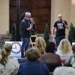 La intensa lluvia registrada en la tarde del sábado impidió continuar con los juegos infantiles de movilidad y el hinchable. Las charlas y ponencias transcurrieron con relativa normalidad a pesar de la intensa lluvia que por momentos inundó parte del interior de la carpa. La reputada geógrafa y urbanista Pilar Vega, después de la inuguración