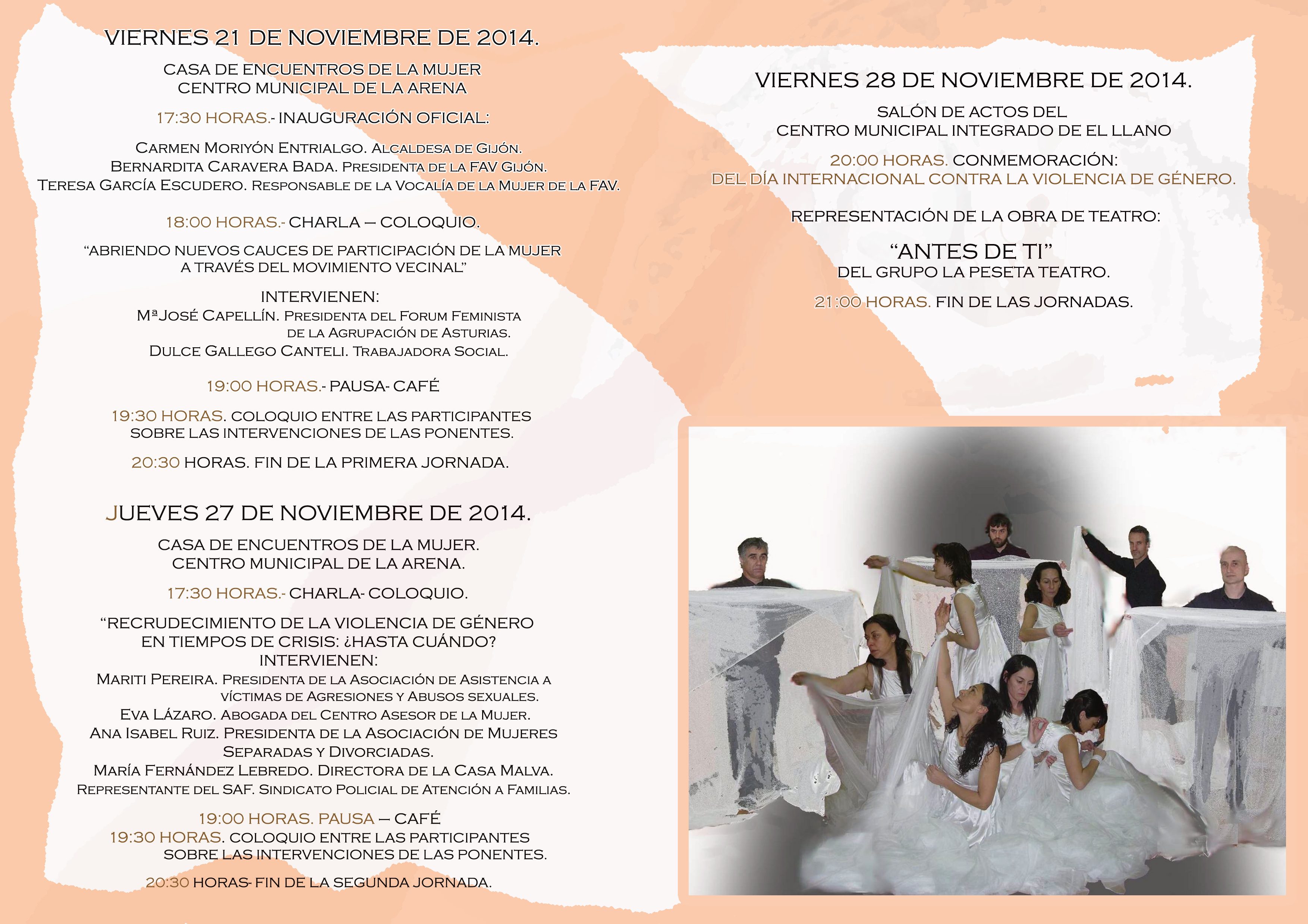 Mañana jueves 30 de abril de 2015, a las 18:30, en los locales de la Nueva Federación Gijonesa de AAVV, Calle Ruta del Alba número 9 bajo, tendrá lugar una mesa redonda bajo el título: El Desarrollo de la Carta Local por la Igualdad en la que intervendrán las siguientes representantes de los disferentes partidos