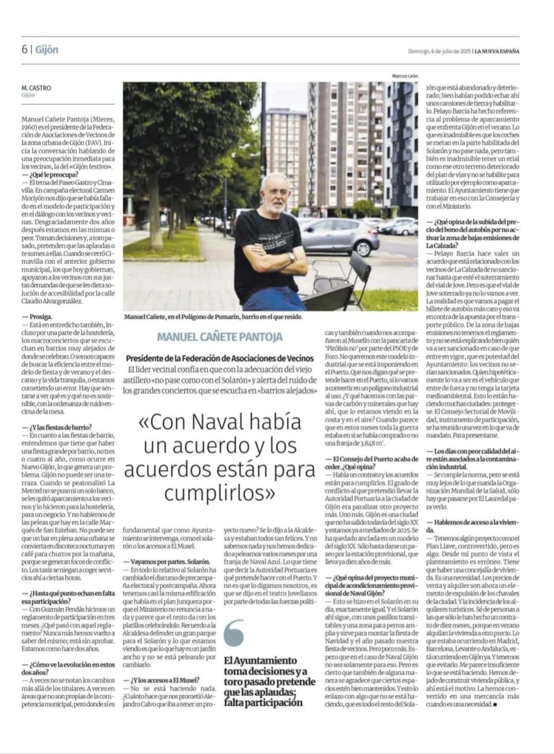 Coincidimos en lamentar la falta de un plan de movilidad para la zona oeste de la ciudad y reclamar una línea de EMTUSA para los barrios de Jove, Pescadores, Portuarios y El Muselín. Coincidencias también en el problema de contaminación, en la solución para el tráfico del Musel, e intercambio de pareceres respecto al Solarón