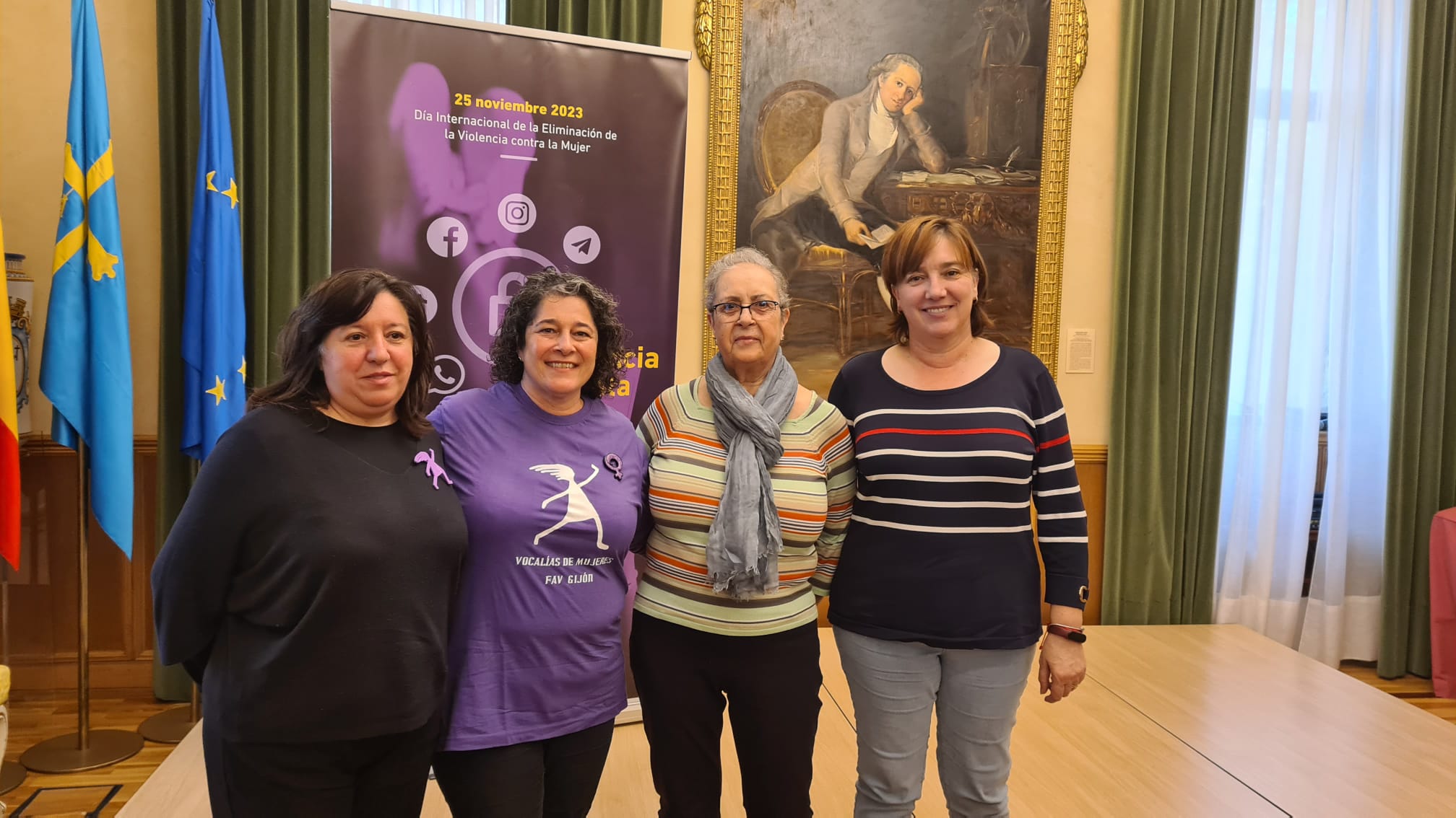 El pasado jueves, en el ayuntamiento, han presentado la campaña del 25N. Además de Jovellanos, Muselin y Moreda, estaba Viesques. Hay varios actos esta semana en la que se celebra el Día Internacional de la Eliminación de la Violencia contra la Mujer El lunes 20, en la Escuela de Comercio, hay un documental: «Aún es