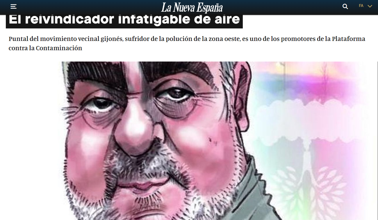 En un amplio artículo, el rotativo asturiano ha hecho un exhaustivo repaso a la vida de nuestro más combativo compañero en la lucha contra la contaminación, mencionando aspectos muy curiosos sobre su vida personal, laboral, y reivindicativa en el movimiento vecinal y ecológico. Agradecemos a los compañeros y compañeras de la Nueva España que se
