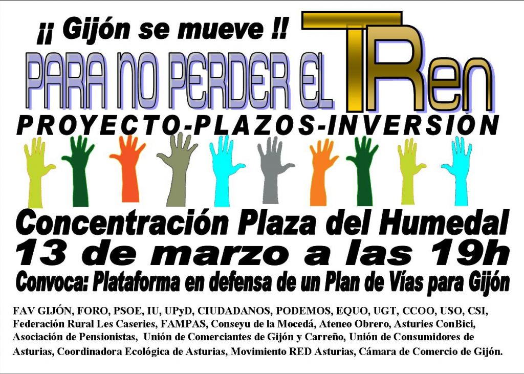 La plataforma en defensa de un plan de vías definitivo para Gijón, integrada por multitud de colectivos y encabezada por la federación vecinal, ha solicitado estar presente en la próxima reunión de Gijón al Norte, sociedad gestora del proyecto ferroviario. Ver noticia en La Nueva España. http://www.lne.es/gijon/2015/02/23/colectivo-plan-vias-pide-reunion/1717284.html