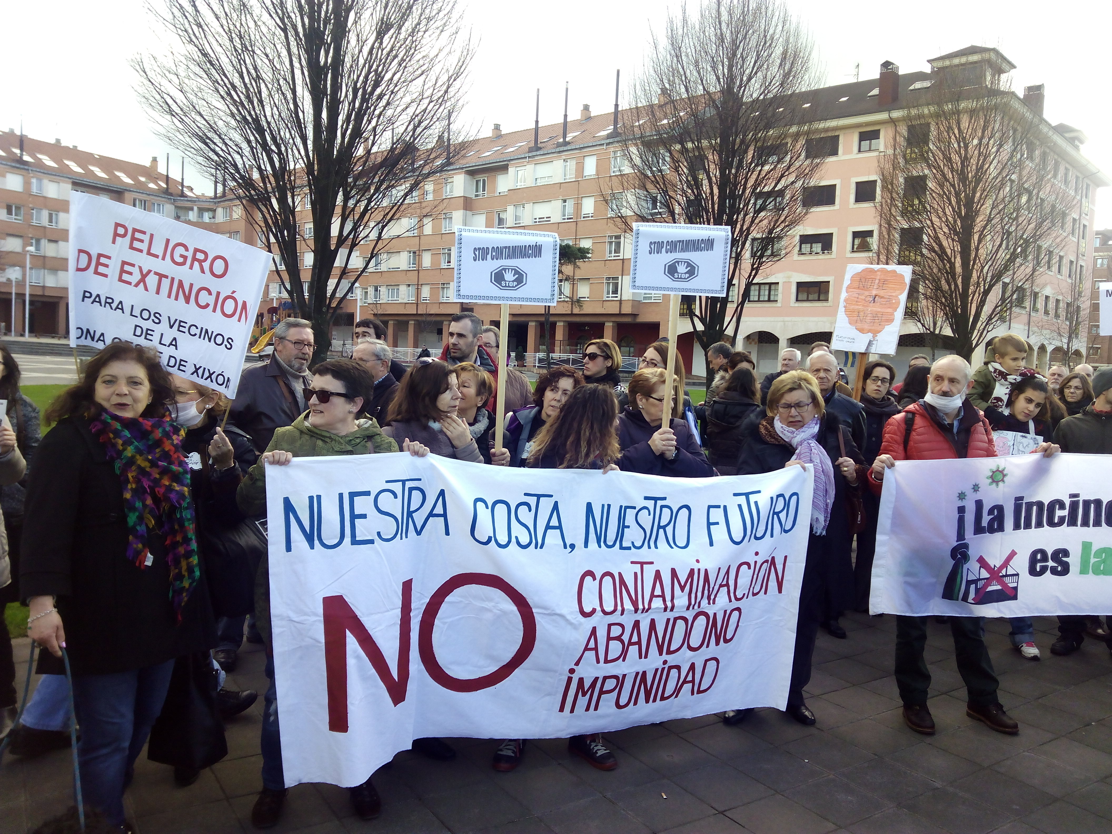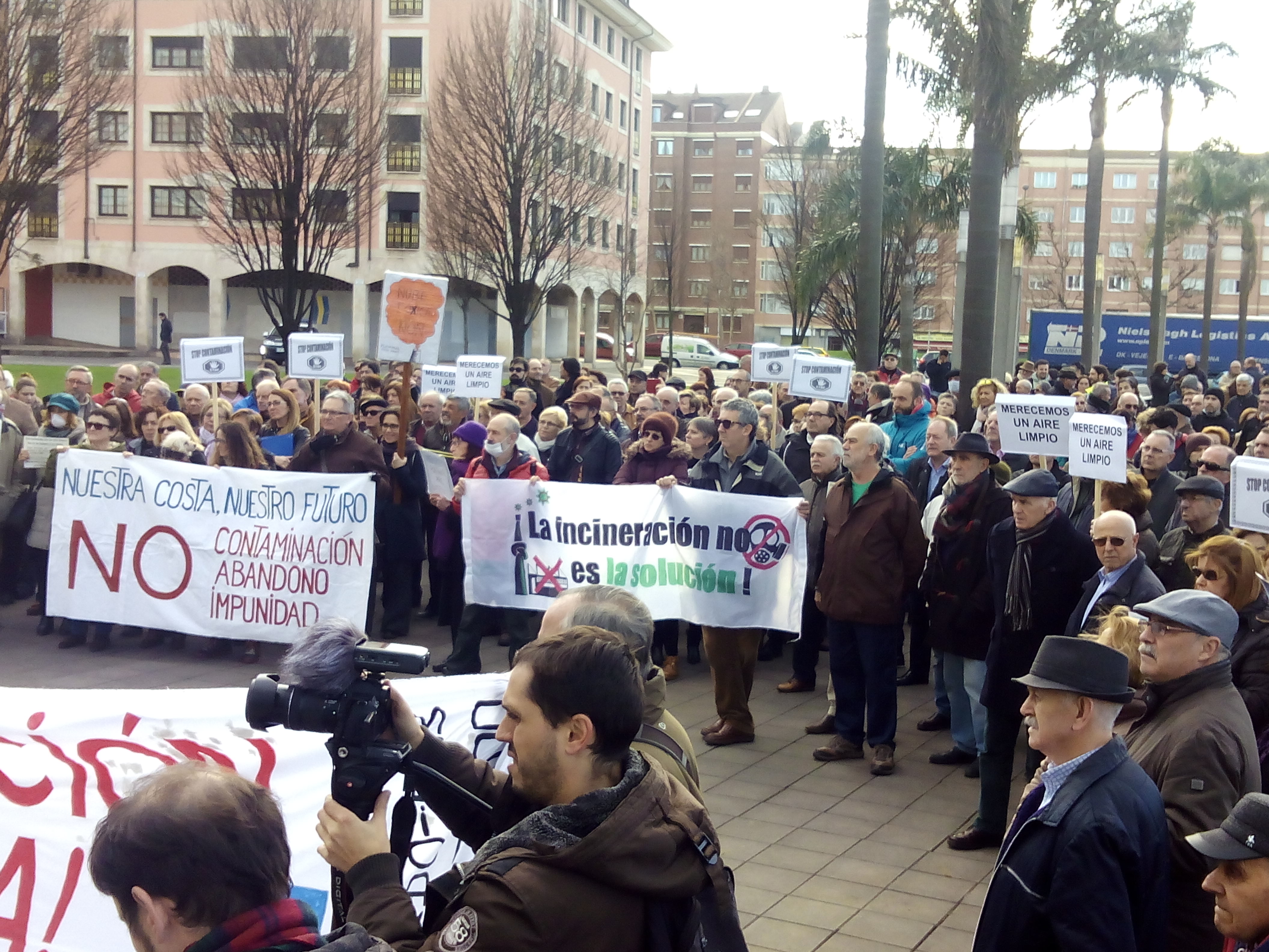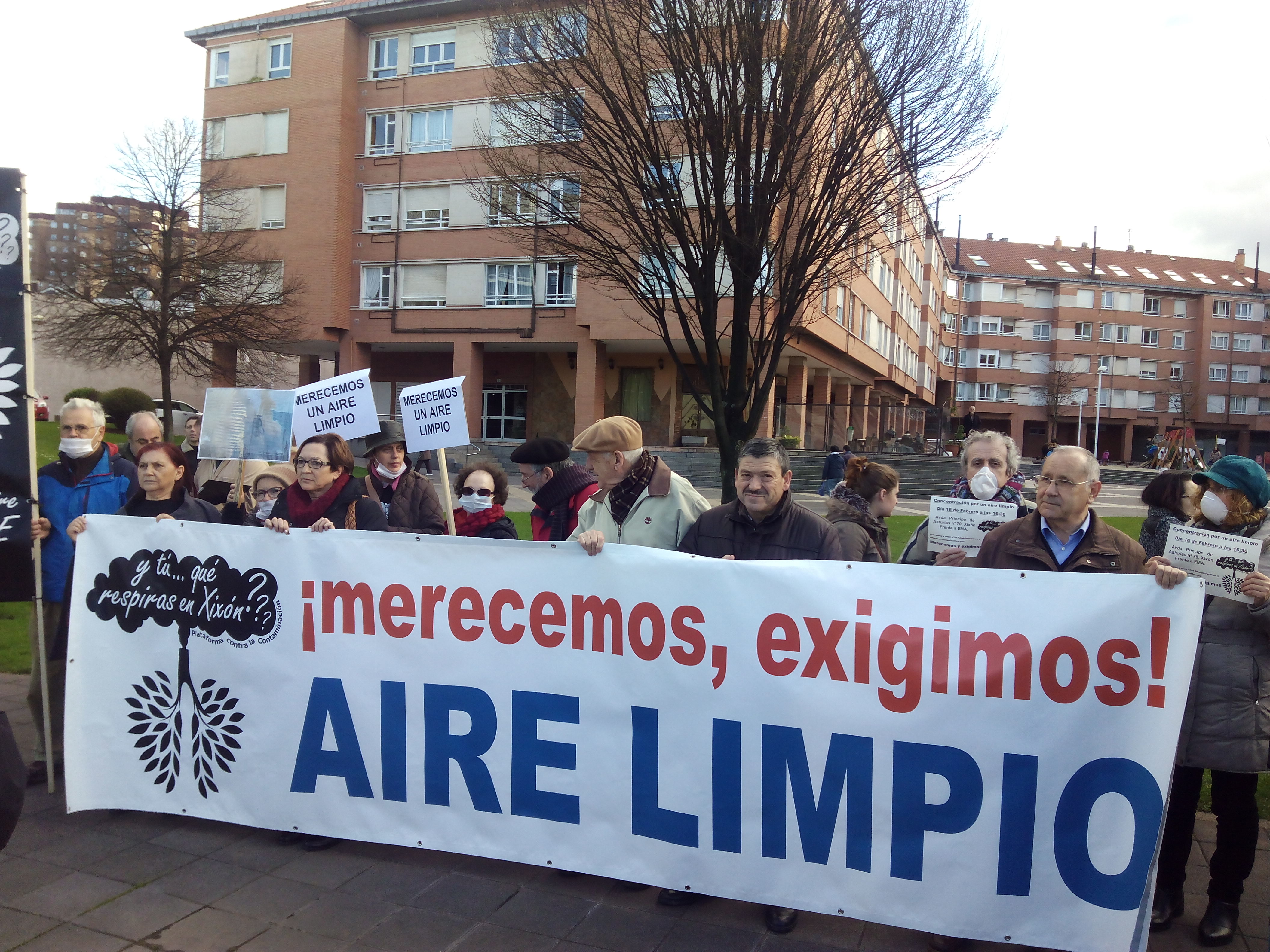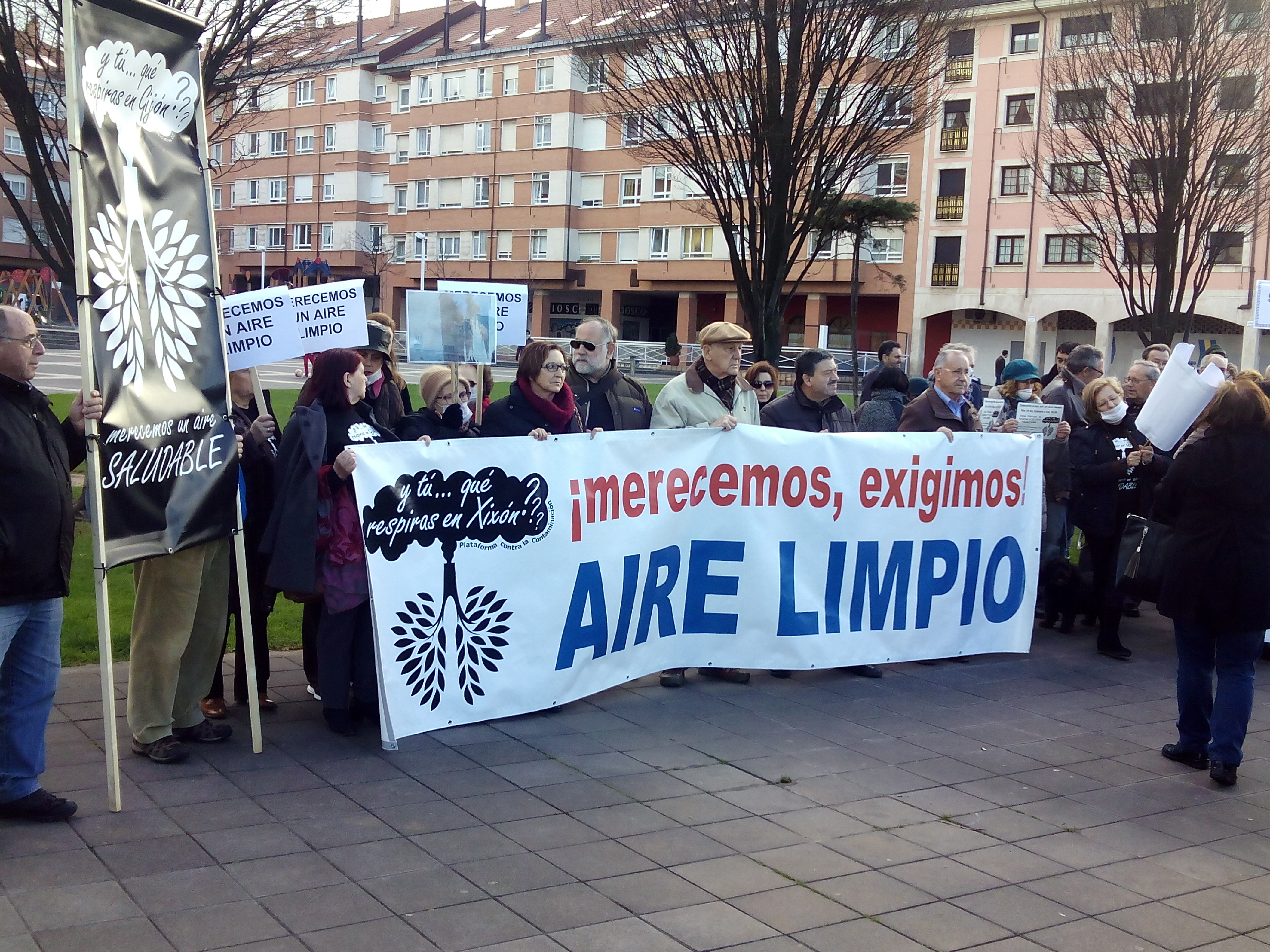Algunas de las imágenes de la concentración de ayer martes a las 17:00 horas, frente al edificio de la EMA en la exigencia de Un Aire Limpio para los vecinos de Gijón.