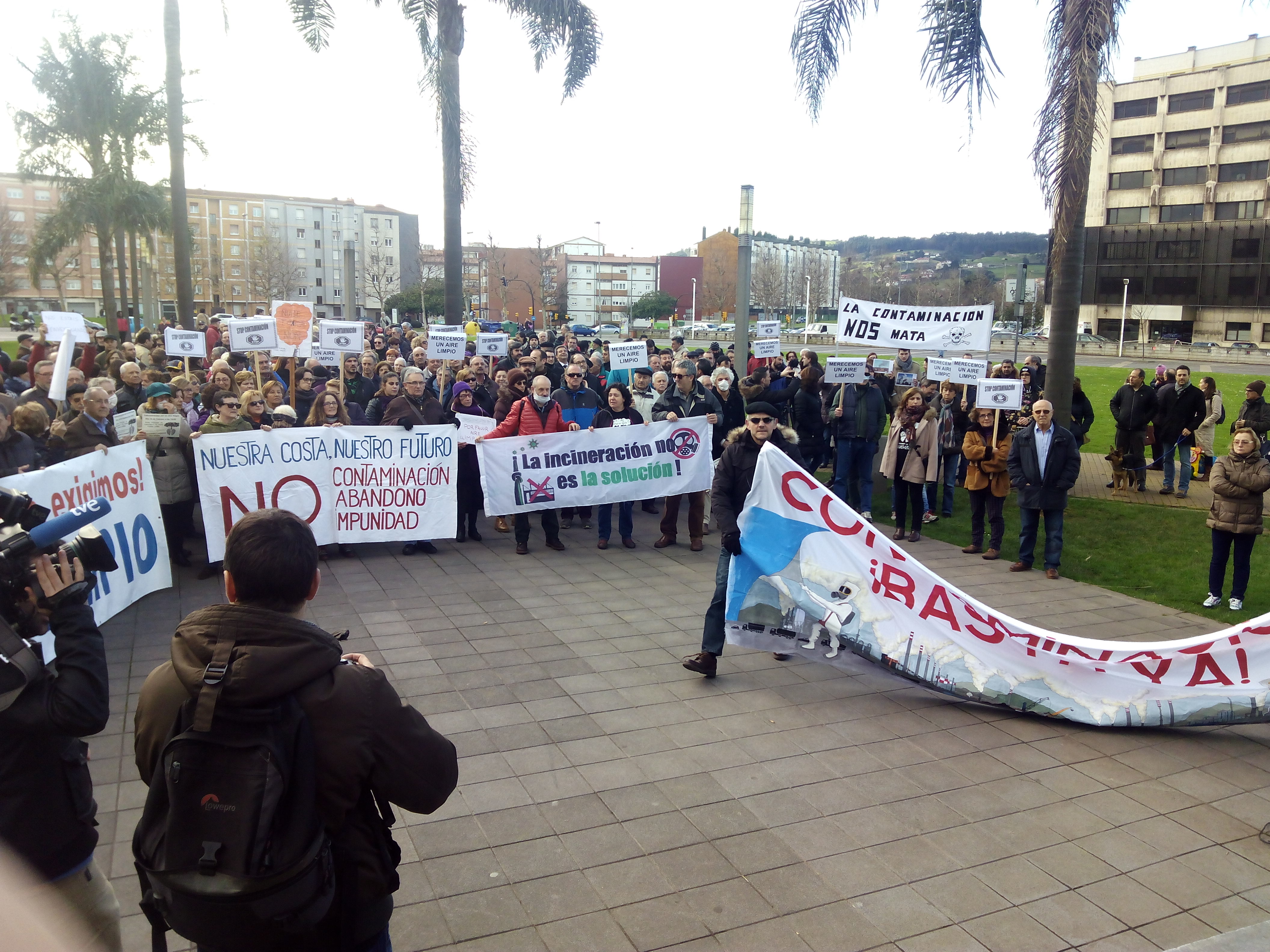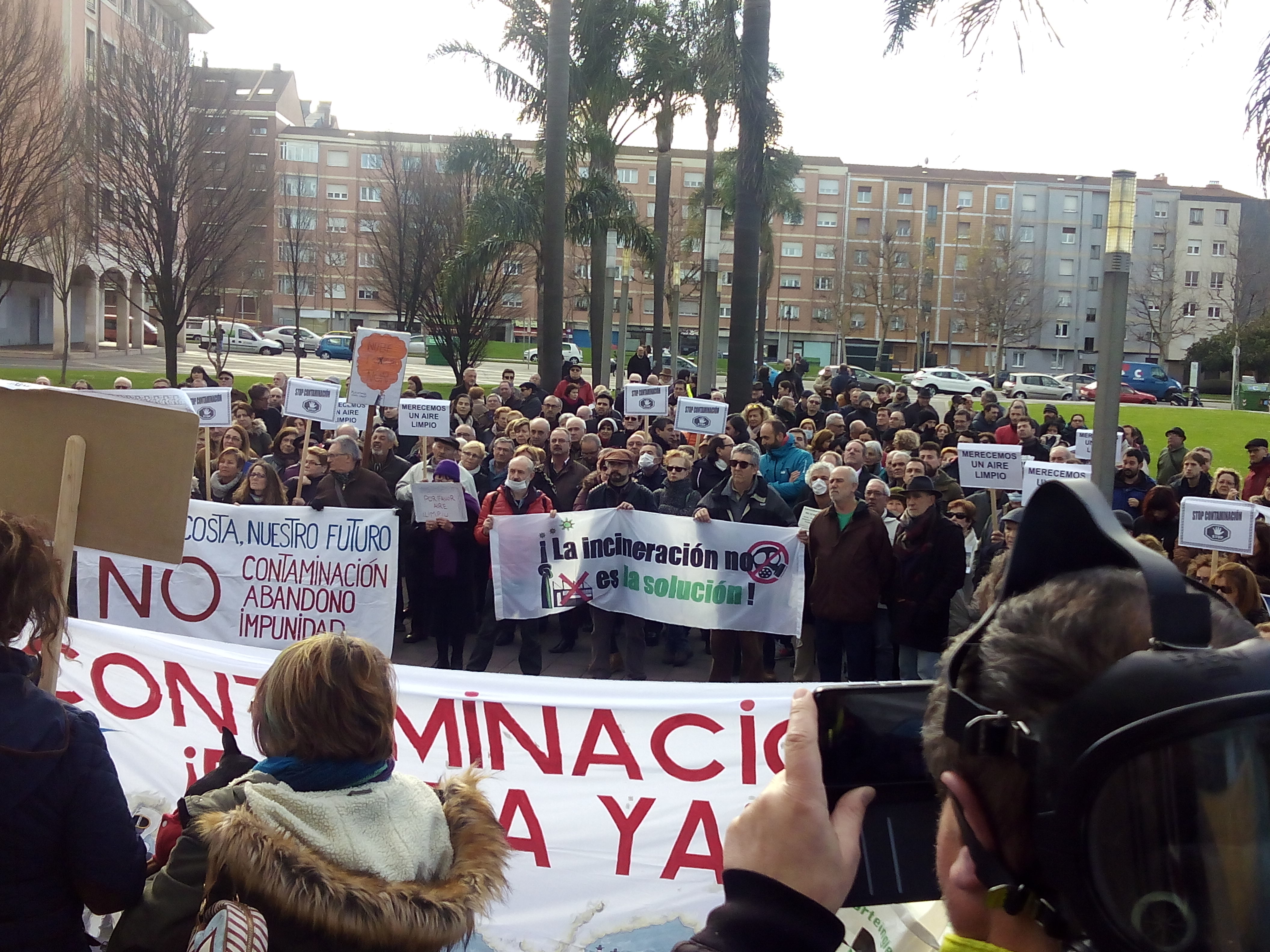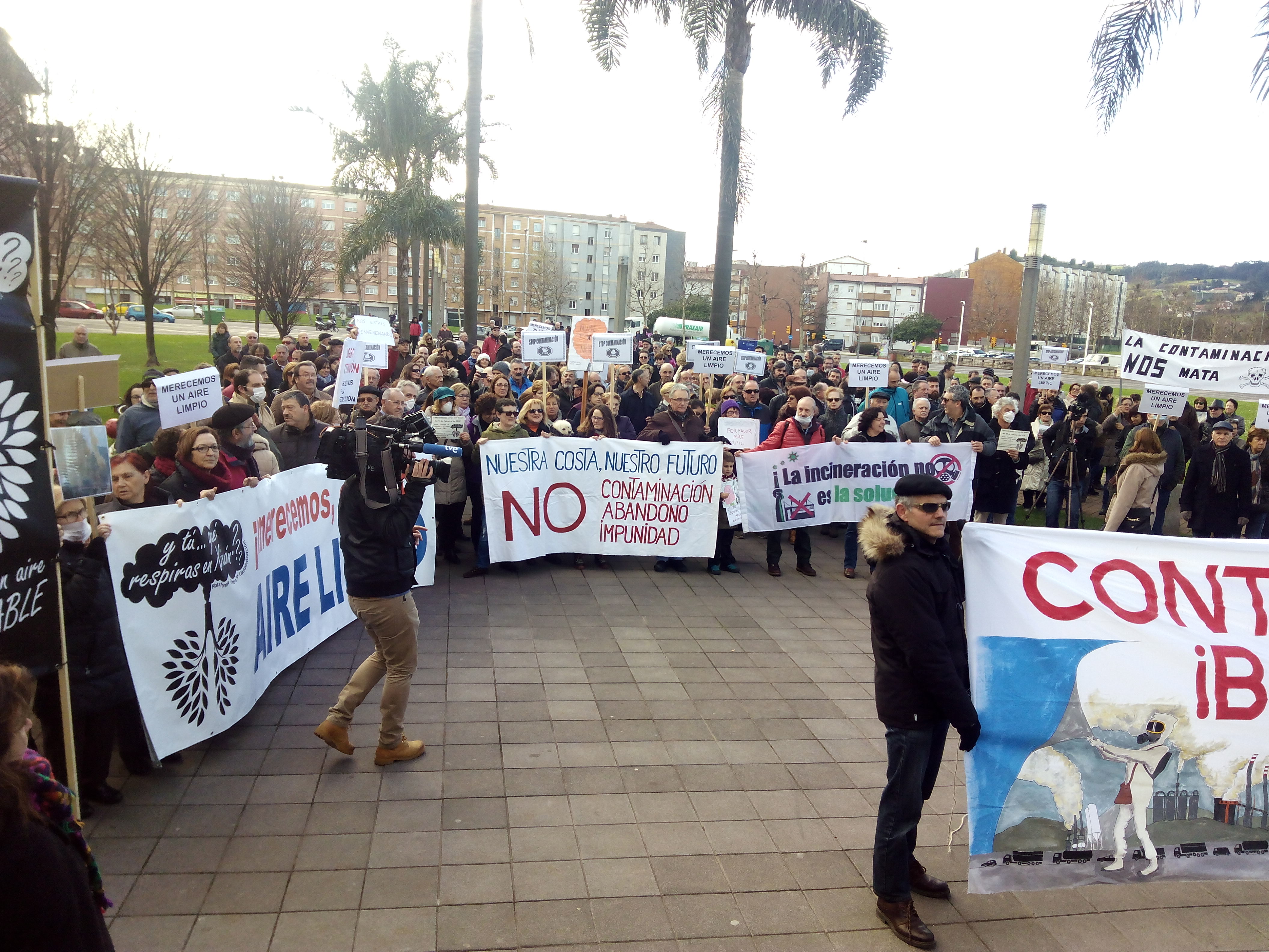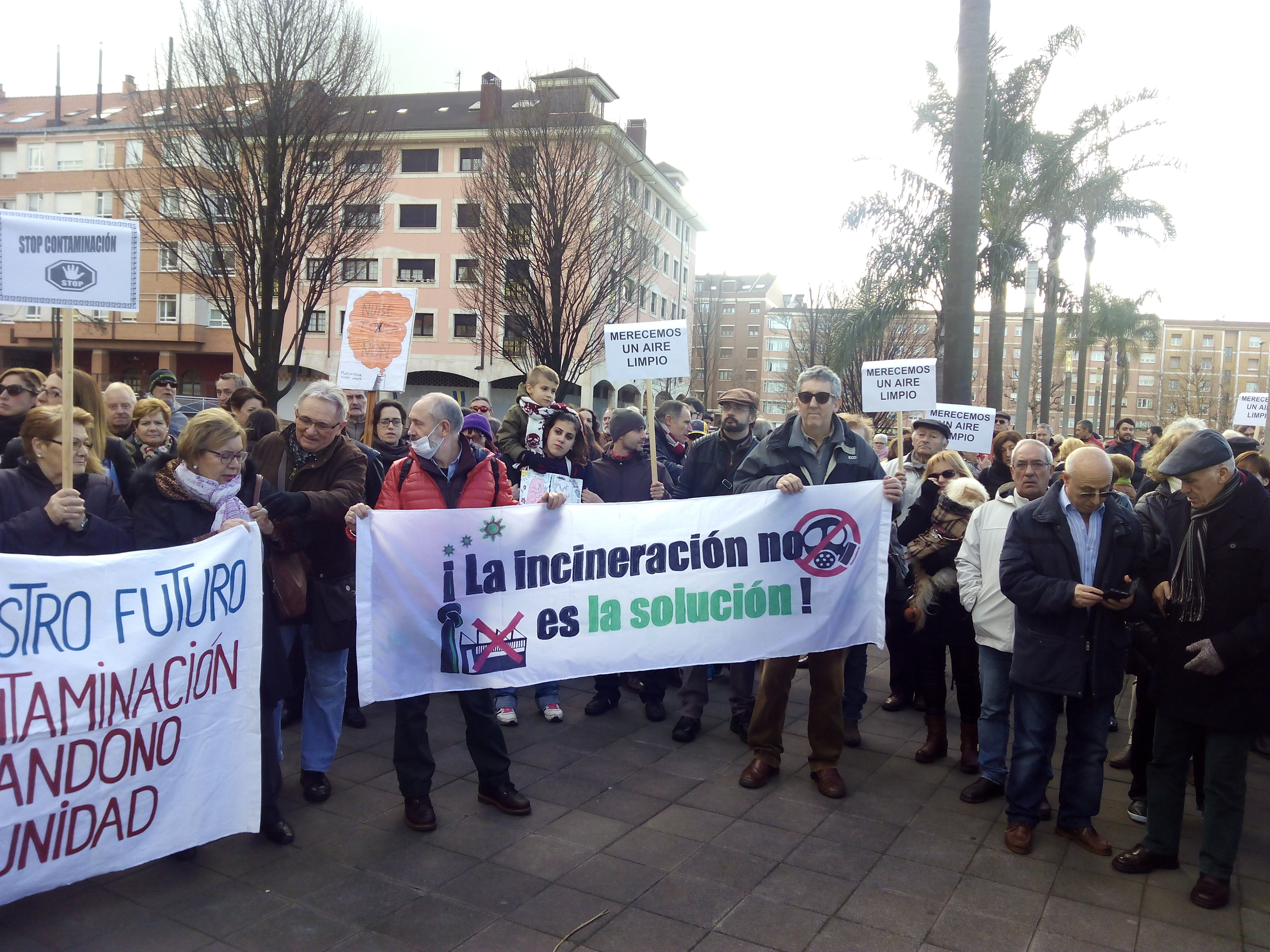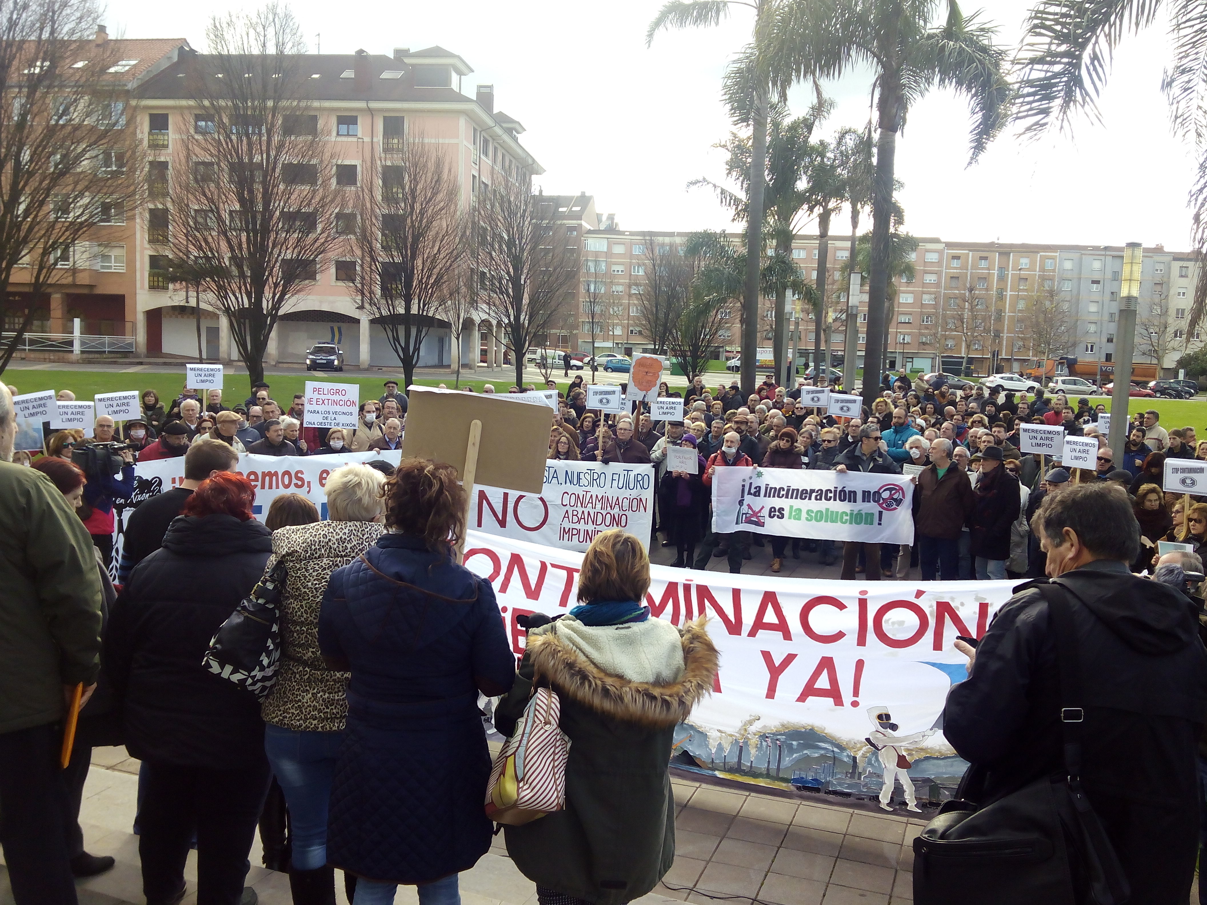 Algunas de las imágenes de la concentración de ayer martes a las 17:00 horas, frente al edificio de la EMA en la exigencia de Un Aire Limpio para los vecinos de Gijón.