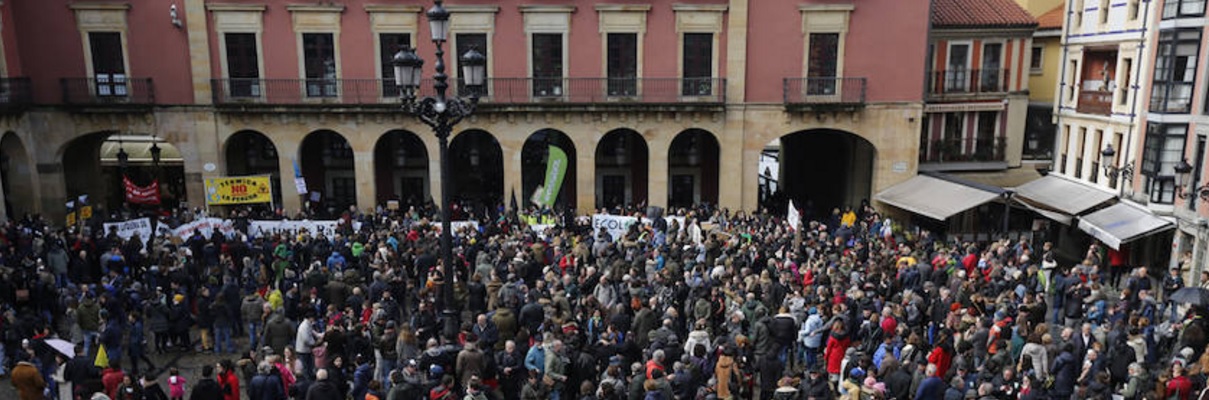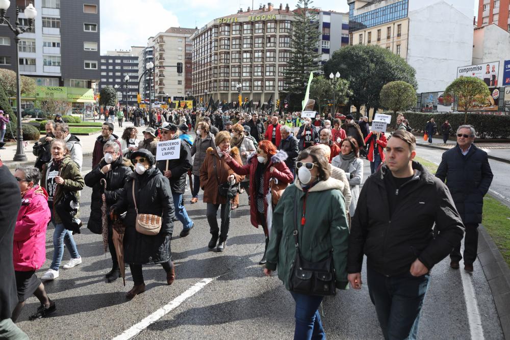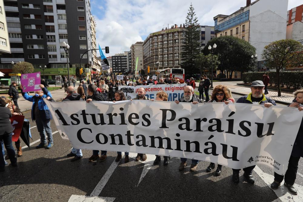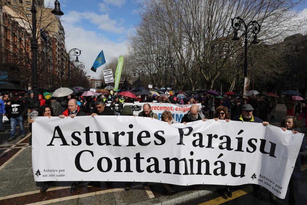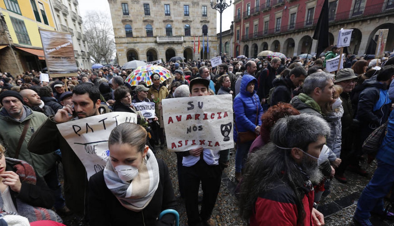 La plataforma «Asturias por un Aire Sano», que integra la FAV, congregó este pasado domingo 18 de marzo en Gijón a unas 4000 personas en la multitudinaria manifestación que transcurrió desde el Paseo de Begoña hasta la Plaza Mayor bajo una intensa lluvia. Está claro que ha sido un mes de grandes manifestaciones en la ciudad, la del Día de la Mujer, la de los pensionistas…y la de la contaminación, que ha demostrado con creces estar a la altura. Bajo el lema no compartido por el grupo municipal socialista «Asturies, Paraísu Contaminau» miles de asturianos mostraron su disconformidad con las decisiones políticas que las administraciones están tomando para intentar paliar la contaminación ambiental de Gijón, un problema fácilmente visible y máxime en la zona oeste de la ciudad. Una abarrotada Plaza Mayor fue testigo de la lectura del manifiesto en el que se recogen todas nuestras reivindicaciones, a cargo de la periodista Elena Bandera.