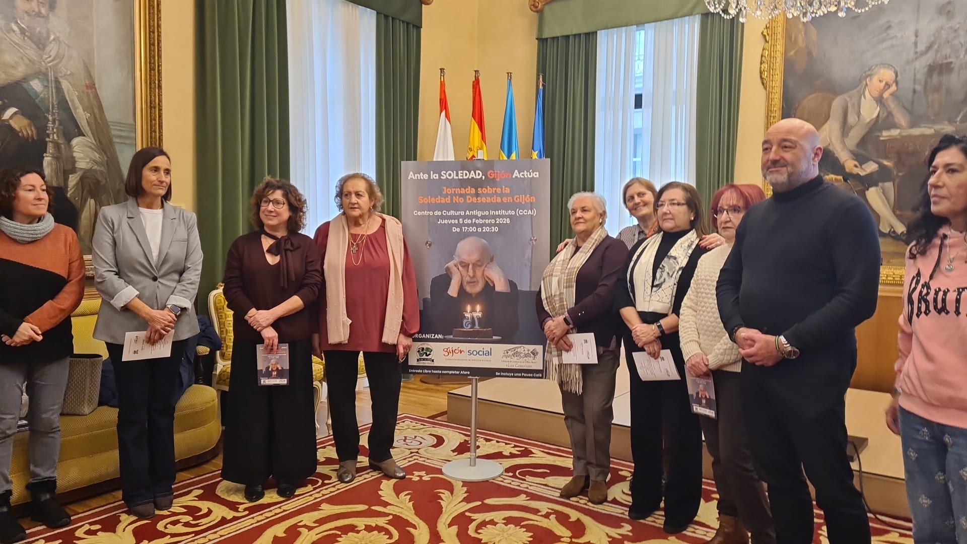 Representantes de la Federación Gijonesa de Asociaciones Vecinales han asistido a la rueda de prensa de presentación de la Jornada sobre Soledad No Deseada, que se celebrará este jueves 5 de febrero.
